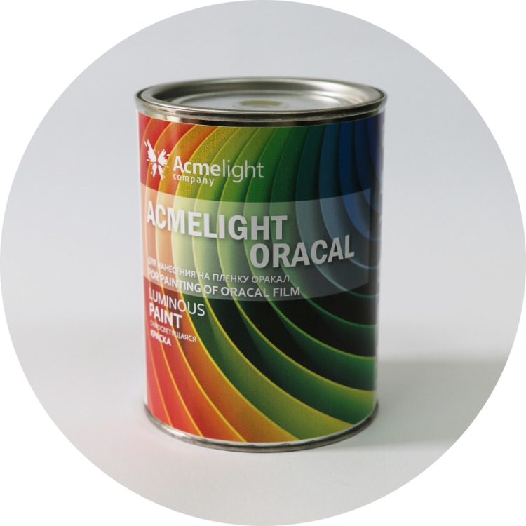 ОПИС: Спеціальна стійка фарба для нанесення (методом шовкотрафаретного друку на твердій поверхні) на плівку, оракал, що світиться в темряві.